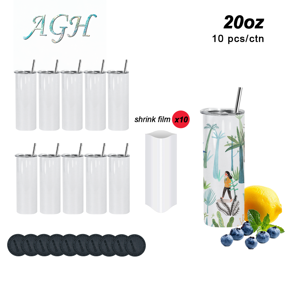 - Product Name: AGH US 10pcs DIYI SET 20 OZ Round edge sublimation blanks straight tumbler with plastic straw, metal straw, rubber bottom and flim wrap