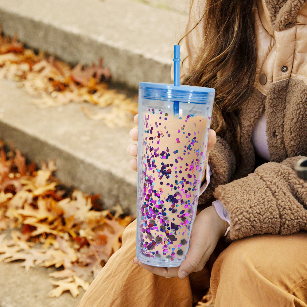 - Product Name: AGH US 24OZ plastic Double-wall tumbler Snow globe acrylic cup tumbler with clear lids and coloring straw 15pcs/carton