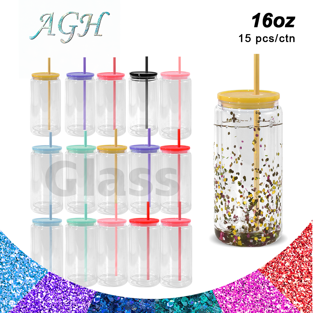 - Product Name: AGH US New 15pcs/carton 16OZ Snow Globe Double Wall Colorful Sublimation Glass Beer Can With Pre Drilled Hole And Plugs