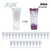 Home>【AGH US Bulk sales】>USA warehouse BPA Free Double Wall snow globe 24oz Clear Plastic Cups 15pcs 25pcs per case